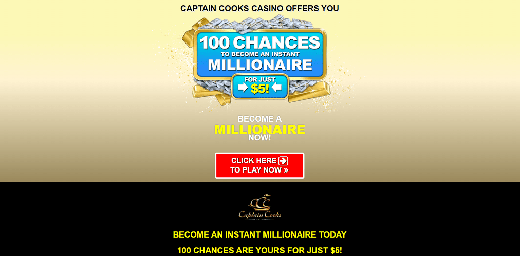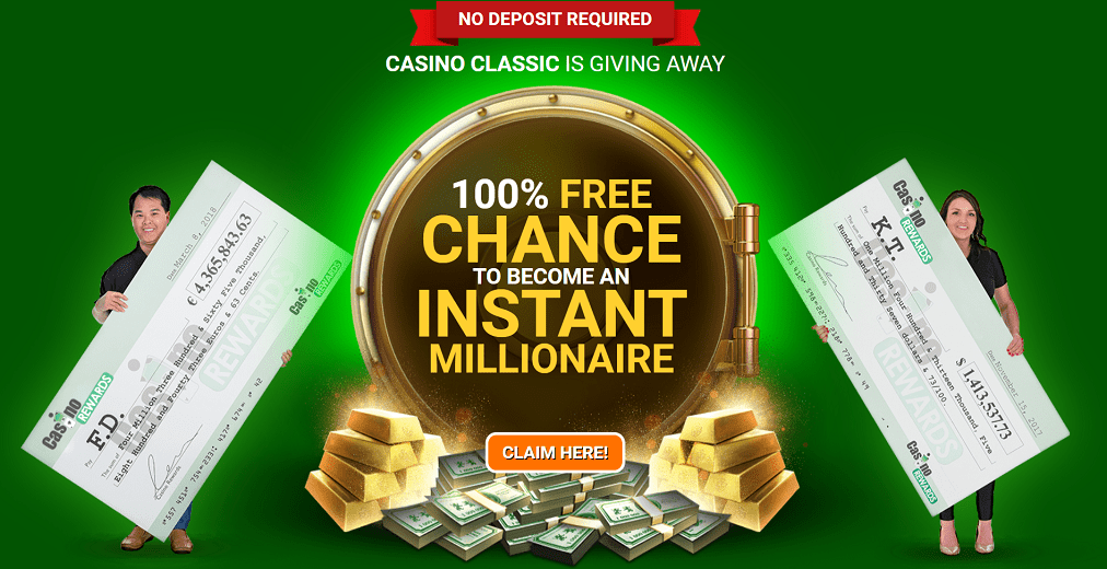 Bonus: You will get A FREE CHANCE to become an instant millionaire, just for signing up – no deposit required! PLUS an extra 40 chances for only $1 on your first deposit!