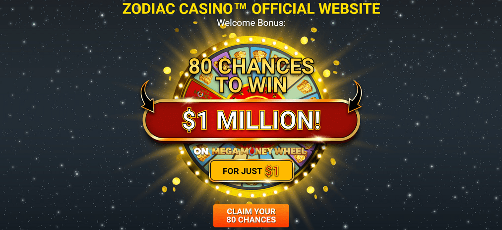 Bonus: Zodiac Casino offers a generous sign-up bonus to new players. For a limited time, when you create an account and make your first deposit of just $1, you'll receive 80 chances to use on the Mega Money Wheel slot game! And the following offers will be given on the subsequent 4 deposits: